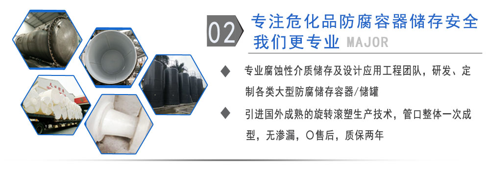 公司有鋼襯塑PE/PO、PE全塑、碳鋼、不銹鋼四大系列100多個(gè)品種,專(zhuān)注于常壓儲(chǔ)存容器生產(chǎn),其產(chǎn)品包括鋼襯塑儲(chǔ)罐、管口一體成型PE儲(chǔ)罐、碳鋼儲(chǔ)罐、不銹鋼儲(chǔ)罐、反應(yīng)釜、攪拌罐、離子交換柱、鋼襯PE/PO儲(chǔ)罐、塑料儲(chǔ)罐、鹽酸儲(chǔ)罐、硫酸儲(chǔ)罐等等。更大限度滿(mǎn)足廣大客戶(hù)的各種需求,同時(shí)可以根據(jù)客戶(hù)的需要加工定制各種防腐設(shè)備。